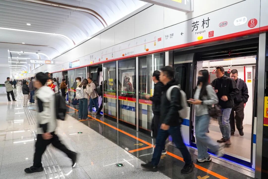 二十二号线全长约29.7公里,共设8座车站,其中4座为换乘站,定位为时速160公里的“南站快线”,采用单一交路运营模式,全程运行时间约27分钟。工作日高峰期安排13列车上线,最小行车间隔约4分50秒。